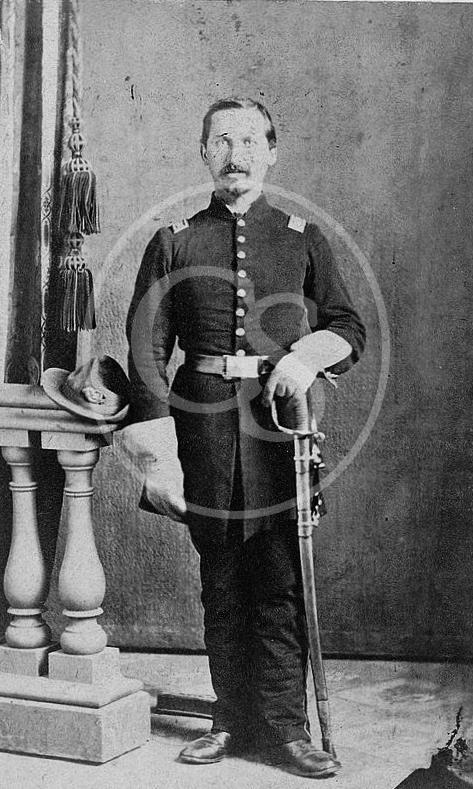 Captain Isidore Esslinger, 32nd Indiana By Michael A. Peake Isidore Esslinger served as an officer in the Swiss Army and studied law at Heidelberg and Tuebingen Universities before immigrating to the United States in 1857. He spent one year at Cincinnati, then relocated permanently to Evansville where he initially worked as a dry-goods clerk. Esslinger joined as 1st lieutenant of Company “K,” 32nd Indiana, receiving commission on September 19, 1861. He became captain of Company “E” on August 13, 1862, and in February 1863, received commendation for his “gallant conduct at Stones River through military knowledge and fine soldierly qualities.” Due to severe sunstroke Esslinger resigned his commission in October 1863. He went home to Evansville but in early1864, he returned to Germany to visit his mother, fell in love with Jeannette Guth of Switzerland and married June 24, 1864 in a union that produced four children. In Evansville, he became a printer and editor/proprietor of the daily German paper, Der Union, and served two terms as Indiana Seventh District Deputy Collector for the Internal Revenue. Esslinger died at age 75 years, 3 months and one day on April 12, 1908. Portrait by T. M. Schleier’s Photograph Gallery, Corner Cherry & Union Streets, Nashville, Tennessee. For Full Bio Click Here |